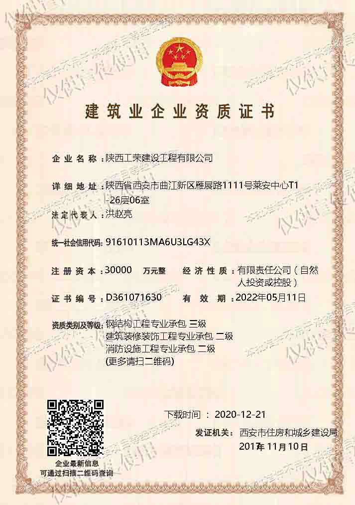 陜西工榮建設(shè)工程有限公司成立于2017年4月11日,企業(yè)注冊(cè)資金3億元,是投資主體多元化有限責(zé)任公司。